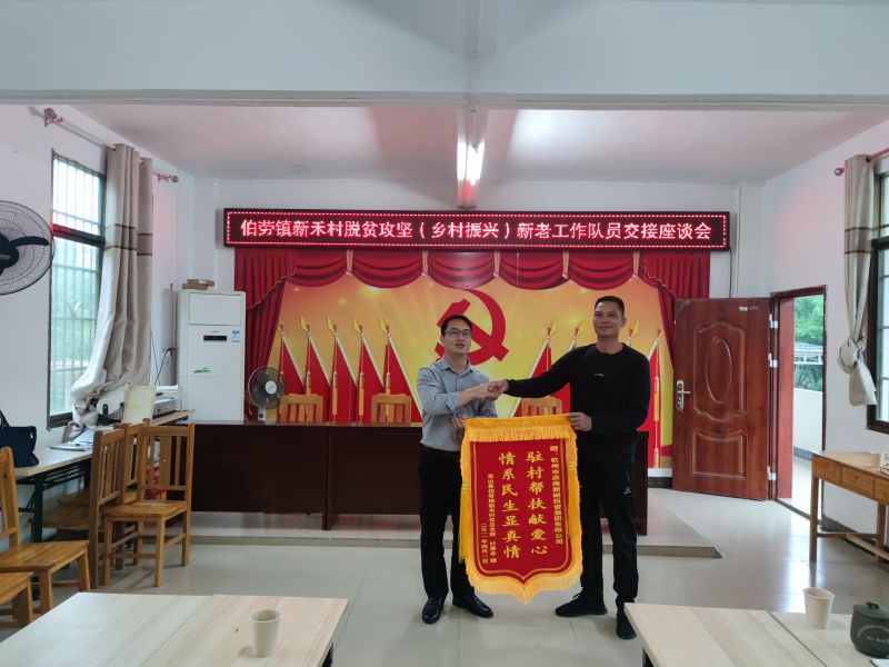 一、2021年4月25日,集團(tuán)公司與市民政局、市退役軍人局、大成鎮(zhèn)黨委領(lǐng)導(dǎo)和新派駐工作隊(duì)員一同抵達(dá)浦北縣大成鎮(zhèn)聯(lián)成村,召開了浦北縣大成鎮(zhèn)聯(lián)成村鄉(xiāng)村振興座談會(huì),座談會(huì)上對(duì)老一屆工作隊(duì)周榮正等同志的辛勤付出和成績(jī)給予了高度肯定,對(duì)新一屆工作隊(duì)梁家強(qiáng)等同志的到來(lái)表示歡迎。座談會(huì)結(jié)束后,進(jìn)行了新舊工作隊(duì)交接儀式。