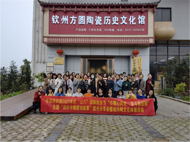 2021年3月8日,欽州市濱海新城投資集團(tuán)有限公司婦委會(huì)圍繞“巾幗心向黨,奮斗新征程”主題,組織開展2021年慶“三八”國(guó)際勞動(dòng)?jì)D女節(jié)“講好巾幗建功故事”讀書分享會(huì)暨坭興陶文化體驗(yàn)活動(dòng),活動(dòng)在欽州方圓陶瓷歷史文化館舉行。