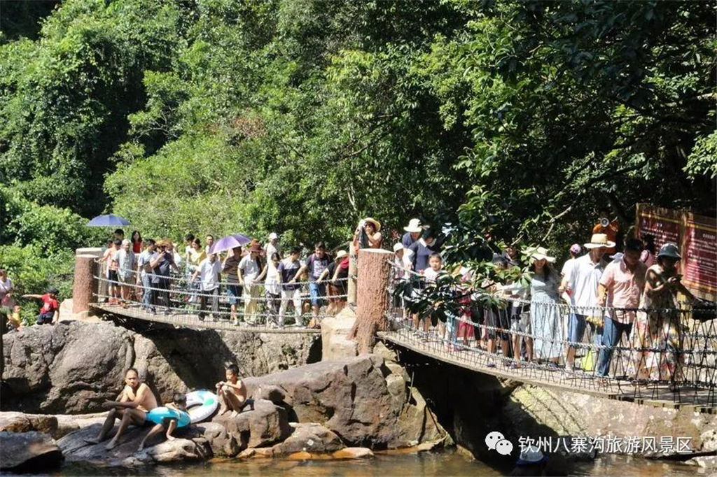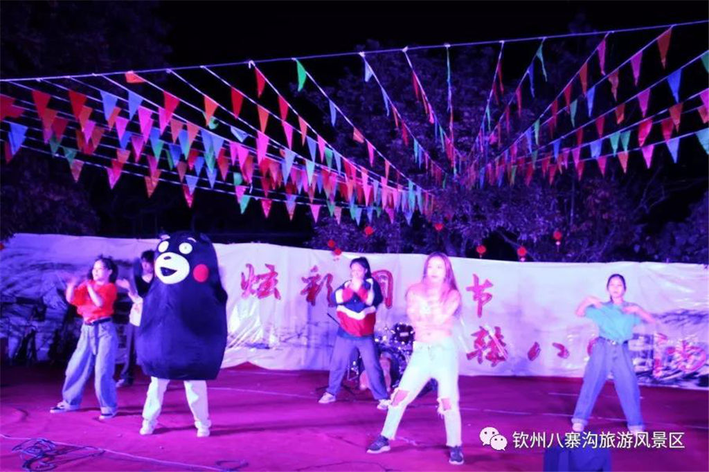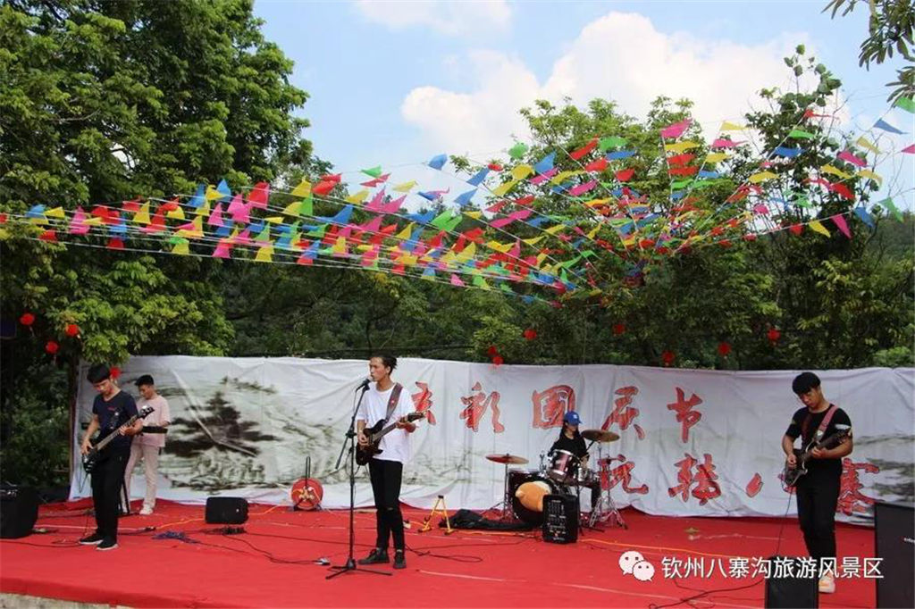 國慶期間景區(qū)舉辦以“炫彩國慶節(jié),玩轉(zhuǎn)八寨溝”為主題的系列活動受到眾多游客親睞。游客們白天可以觀看精彩歌舞文藝演出,玩真人CS運(yùn)動,品嘗各種各樣的特產(chǎn)美食,學(xué)制作欽州坭興陶,體驗(yàn)欽州第一漂—八寨溝森林漂流,登山徒步暢游山水,呼吸新鮮空氣,天然水潭戲水其樂無窮,整個景區(qū)一片游客如織、喜樂融融的景象。