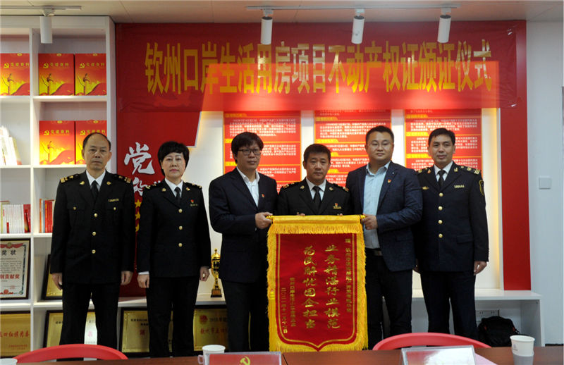 2021年11月23日上午,市商務局、市濱海投資集團公司在市濱海投資集團公司12樓黨員活動室聯(lián)合開展“我為群眾辦實事”主題實踐活動,舉行欽州口岸生活用房項目不動產(chǎn)權證頒證儀式。市濱海投資集團公司黨委副書記卜玉聲同志主持會議,市商務局黨組書記、一級調(diào)研員王紹平同志出席會議并講話。