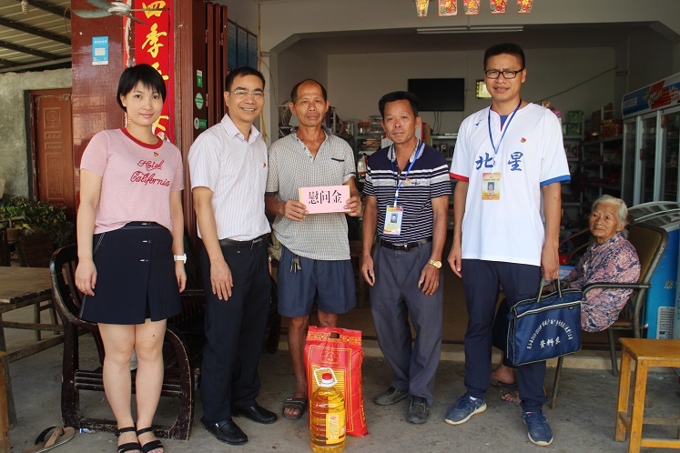 為紀(jì)念建黨97周年,弘揚黨的光榮傳統(tǒng)和優(yōu)良作風(fēng),充分體現(xiàn)黨組織對基層黨員的關(guān)懷和愛護(hù),6月28日上午,集團(tuán)公司黨委副書記覃世金同志組織部分黨員干部來到幫扶村—靈山縣伯勞鎮(zhèn)新禾村,開展集團(tuán)公司“七一”慰問生活困難黨員、老黨員和村干部活動,為他們送去慰問金和慰問品。
