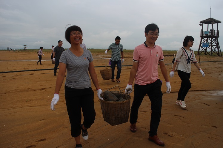 風雨停歇之時,第一、二黨支部全體黨員捋起袖子,提起垃圾筐,在黃金浴場上進行“拉網(wǎng)式”清撿垃圾活動。活動中,大家分工協(xié)作,團結互助,忙得不亦樂乎,現(xiàn)場一片熱火朝天的景象。沙灘上的垃圾大多為煙蒂、石頭、礦泉水瓶等,考慮群眾在沙灘上大都赤腳走路,為了群眾的安全,黨員們將沙灘上的貝殼也都一并清撿,清除貝類劃傷的風險。其中一位老黨員向大家說到:“大家一定不要覺得清潔活動就只是單純地撿垃圾,我們撿的可都是‘黃金’啊,別看小小一個煙蒂,我們把它撿起來了,環(huán)境就美了,群眾就會更加自覺了,那么誰也不舍得扔下手中的這枚‘黃金’了。所以,我們黨員今天的清潔行動不僅是推行群眾文明出行的理念,更是引導群眾自覺保護環(huán)境,關愛自然,從而讓清潔、環(huán)保成為每個人的責任。”老黨員看似平淡的話語,卻是對我們的諄諄教導,進一步激發(fā)了我們身為一名共產(chǎn)黨員的責任感和使命感,同時也讓我們深刻認識到生態(tài)環(huán)境建設和保護迫在眉睫。