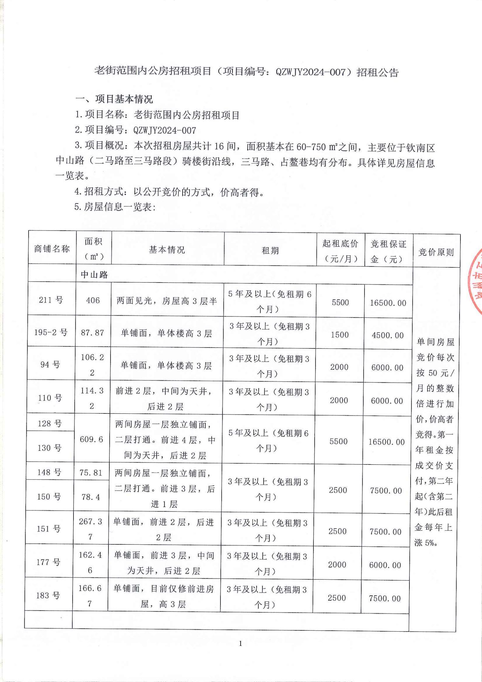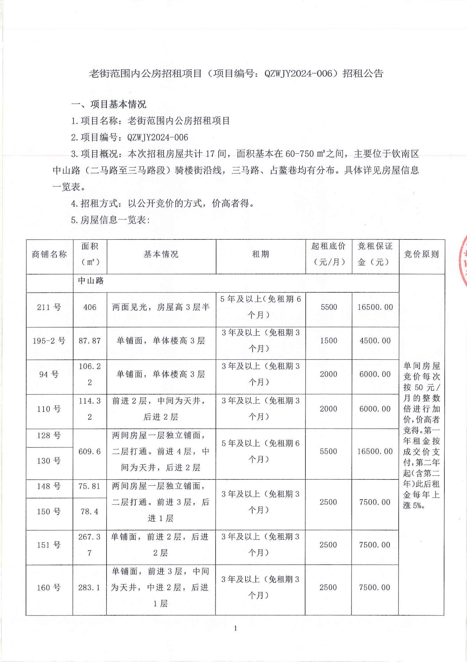 關(guān)于欽州市老街范圍中山路49號(hào)房屋公開招租結(jié)果的公示