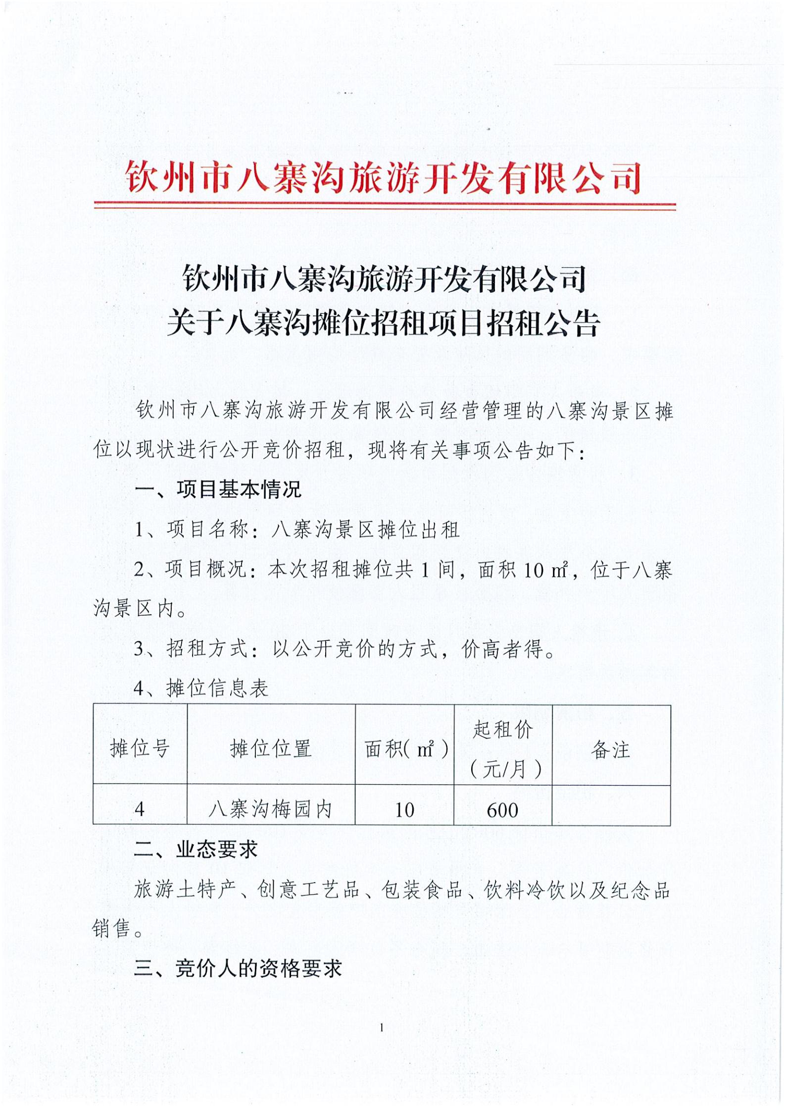 關(guān)于八寨溝攤位招租項(xiàng)目招租公告