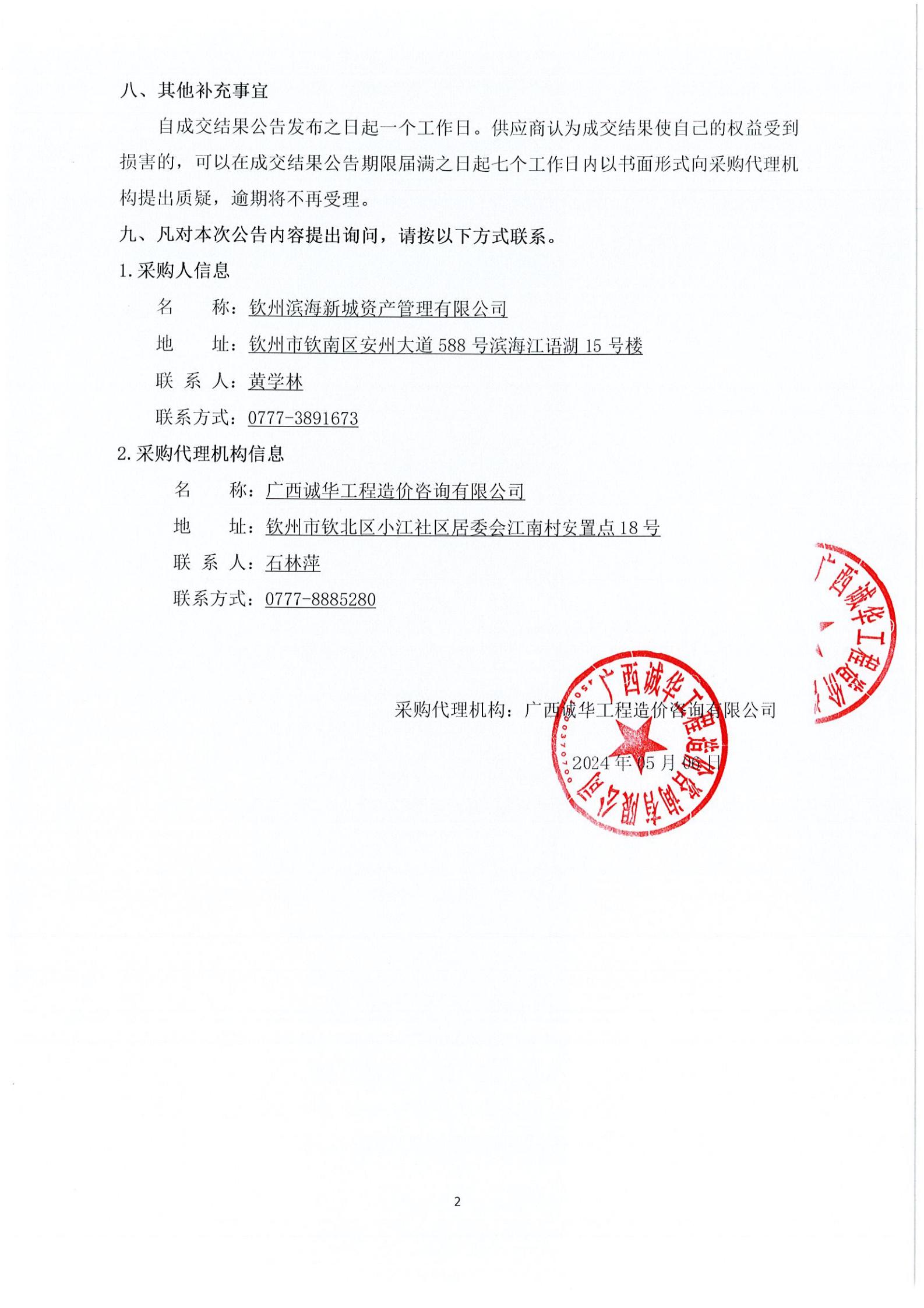 關(guān)于欽州市濱海新城投資集團有限公司綜合展示廳成交結(jié)果公告