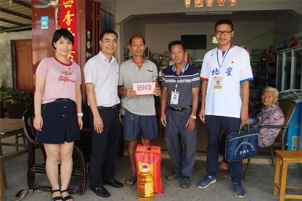 為紀(jì)念建黨97周年,弘揚(yáng)黨的光榮傳統(tǒng)和優(yōu)良作風(fēng),充分體現(xiàn)黨組織對(duì)基層黨員的關(guān)懷和愛護(hù),6月28日上午,集團(tuán)公司黨委副書記覃世金率部分黨員干部來到幫扶村—靈山縣伯勞鎮(zhèn)新禾村,開展集團(tuán)公司“七一”慰問生活困難黨員、老黨員和村干部活動(dòng),為他們送去慰問金和慰問品,同時(shí)也對(duì)集團(tuán)公司幫扶的貧困戶進(jìn)行了入戶走訪。