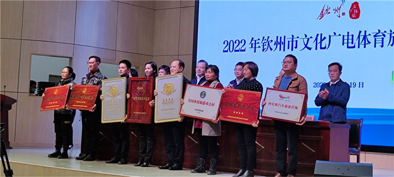 (集團公司副總經(jīng)理楊新棟在會上作交流發(fā)言) 集團公司副總經(jīng)理楊新棟出席會議,并在會上以《踐行新發(fā)展理念,推動文化旅游發(fā)展》為主題作交流發(fā)言。近年來,集團公司深入貫徹落實自治區(qū)和市委、市人民政府關于促進文化建設和旅游發(fā)展的重大決策部署,建設文化旅游強市,積極踐行文化旅游發(fā)展新理念,以繡花功夫改造歷史文化街區(qū),以強化服務提升八寨溝旅游景區(qū)品質(zhì),積極培育文化旅游市場,發(fā)展文化旅游產(chǎn)業(yè)。下一步,集團公司將深入貫徹市委、市人民政府實施“建大港、壯產(chǎn)業(yè)、造濱城、美鄉(xiāng)村”四輪驅(qū)動戰(zhàn)略,謀劃沙井島、辣椒槌濱??叼B(yǎng)旅游度假項目,繼續(xù)完善提升歷史文化街區(qū)、八寨溝旅游景區(qū)設施,加大宣傳力度,開發(fā)優(yōu)質(zhì)旅游產(chǎn)品,推動文化和旅游工作開創(chuàng)新局面,為我市爭創(chuàng)國家歷史文化名城、廣西旅游休閑城市增添一份力量。 集團公司副總經(jīng)理楊新棟(前排右四)領取欽州老街景區(qū)評定為國家AAAA級旅游景區(qū)證書
