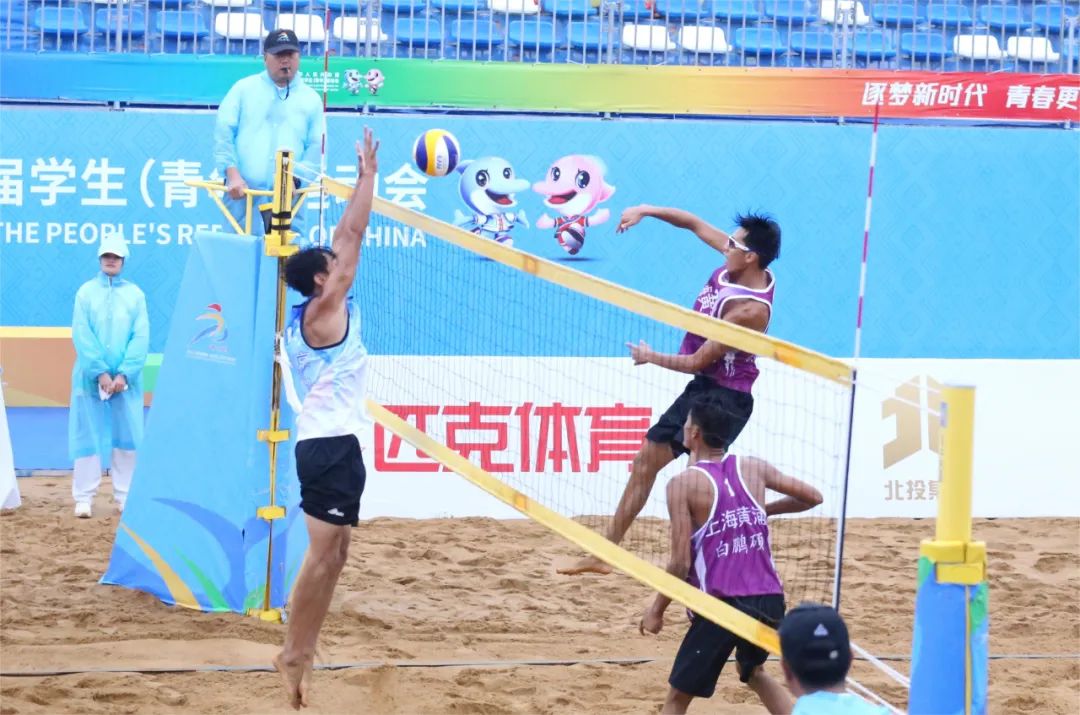 △學(xué)青會男子沙灘排球決賽。融媒體記者 肖鑫 攝