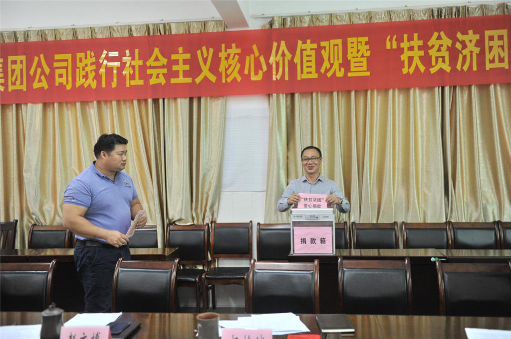 會后,立即開展了“扶貧濟困,扶弱助貧”捐贈活動,集團公司發(fā)動黨員、干部、職工自愿參與扶貧捐贈活動,呼吁全體職工參與到“全國扶貧日”這項意義深遠(yuǎn)的活動中來?;顒又校瘓F公司主要領(lǐng)導(dǎo)帶頭捐款,干部職工都積極響應(yīng),當(dāng)天籌集到的愛心捐款共計¥8040.00元(人民幣捌仟零肆拾元整),所籌集的捐款將用于公司定點幫扶貧困村、貧困戶的生產(chǎn)生活條件改善、產(chǎn)業(yè)發(fā)展或發(fā)展村集體經(jīng)濟。