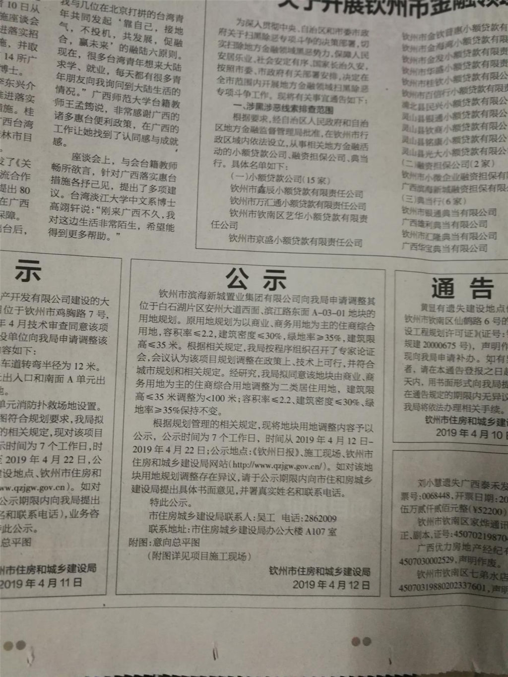 為盤活存量土地,加快推進(jìn)經(jīng)營性項目開展,我集團(tuán)公司擬與廣西欽州華元置業(yè)有限公司合作開發(fā)北部灣人才創(chuàng)業(yè)基地項目二期地塊,雙方于2018年12月17日正式簽訂了承包開發(fā)協(xié)議。目前投資發(fā)展部正在積極對接開展項目開發(fā)前置工作,其中地塊規(guī)劃調(diào)整論證已于2019年2月22日通過了市住建局組織召開的專家評審會,并于2019年4月22日完成了項目現(xiàn)場、網(wǎng)站及報刊的公示工作,在規(guī)劃調(diào)整的關(guān)鍵環(huán)節(jié)取得了突破性進(jìn)展。