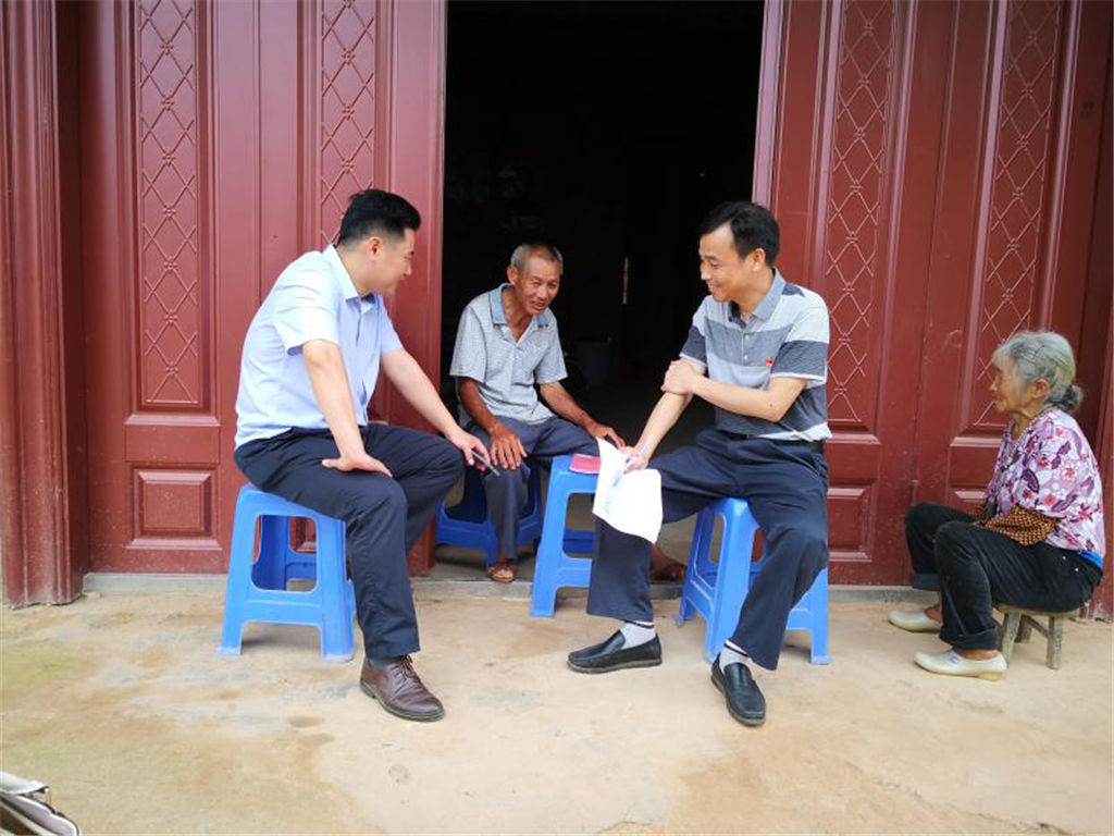 (圖為幫扶干部正在向幫扶對象傳達(dá)產(chǎn)業(yè)獎(jiǎng)補(bǔ)政策)