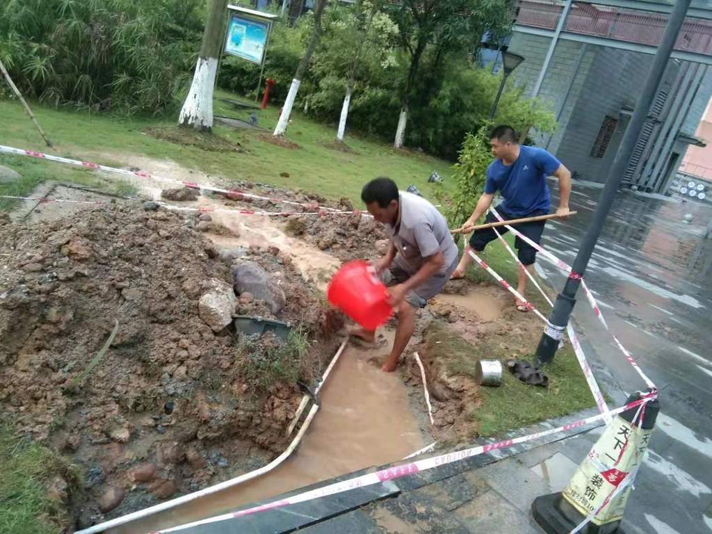 8月29日傍晚,蘭亭街一處深埋的水管爆裂,裂口較大,出水很急。我集團(tuán)公司子公司資產(chǎn)公司接到電話后,立即安排人員到現(xiàn)場(chǎng)深入了解情況,聯(lián)系水務(wù)公司專業(yè)維修隊(duì)進(jìn)行搶修,并及時(shí)通知蘭亭街商家做好儲(chǔ)水應(yīng)急準(zhǔn)備。