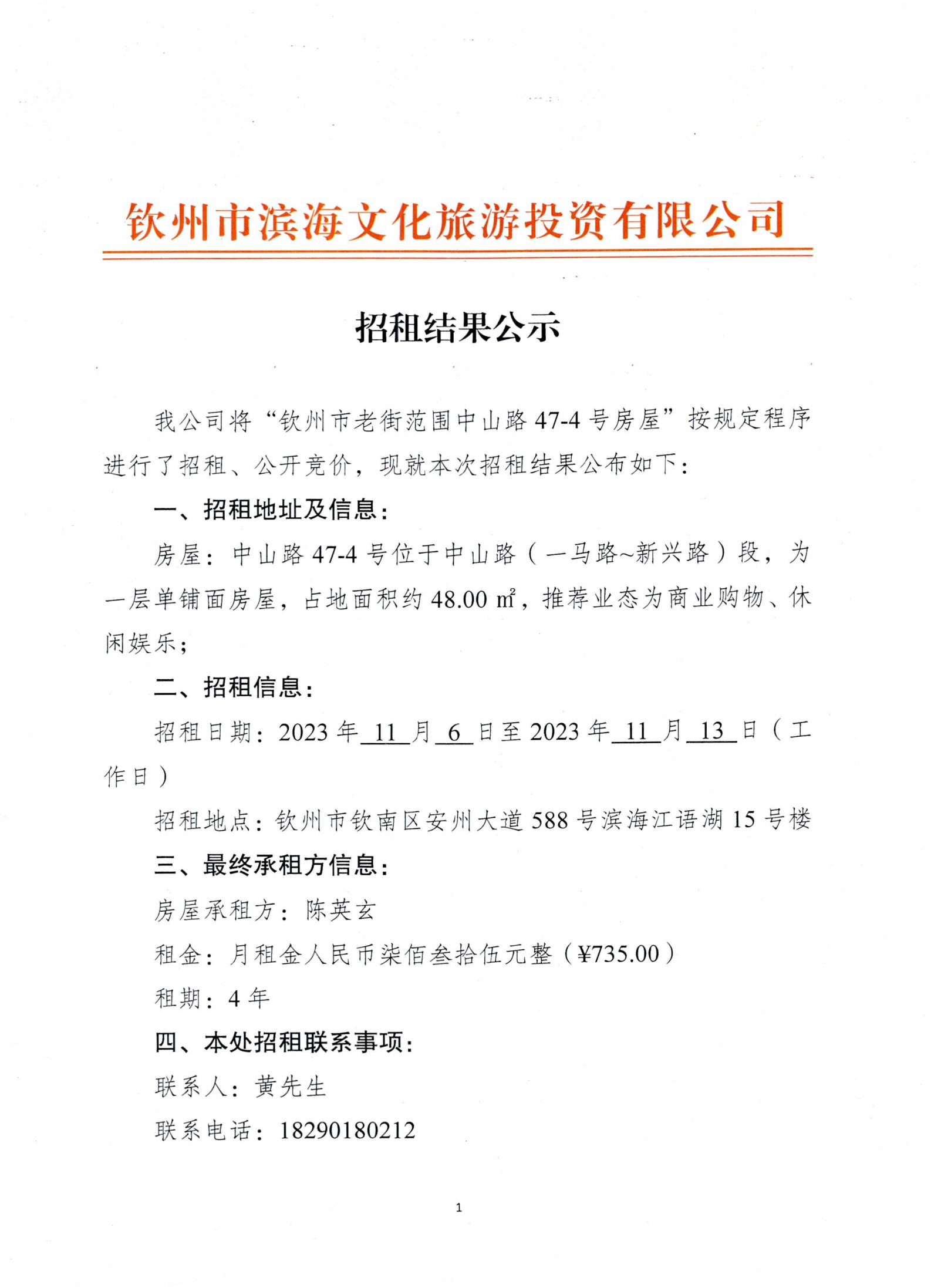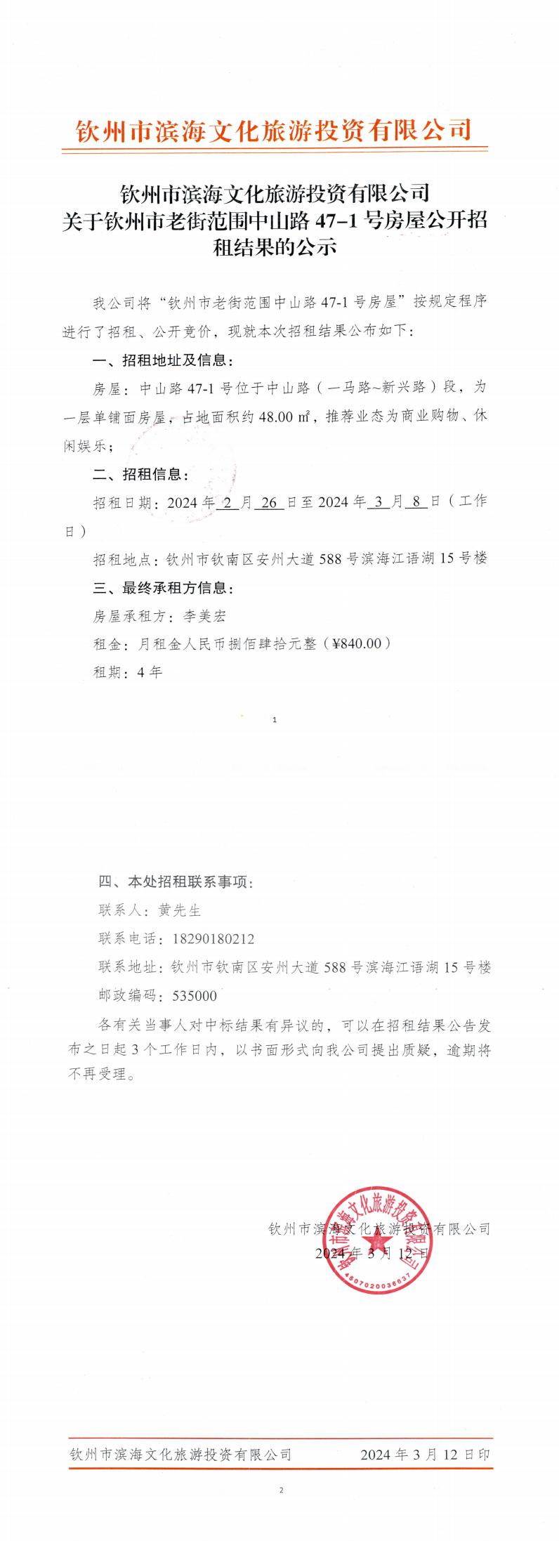 關(guān)于欽州市老街范圍中山路47-1號房屋公開招租的公示