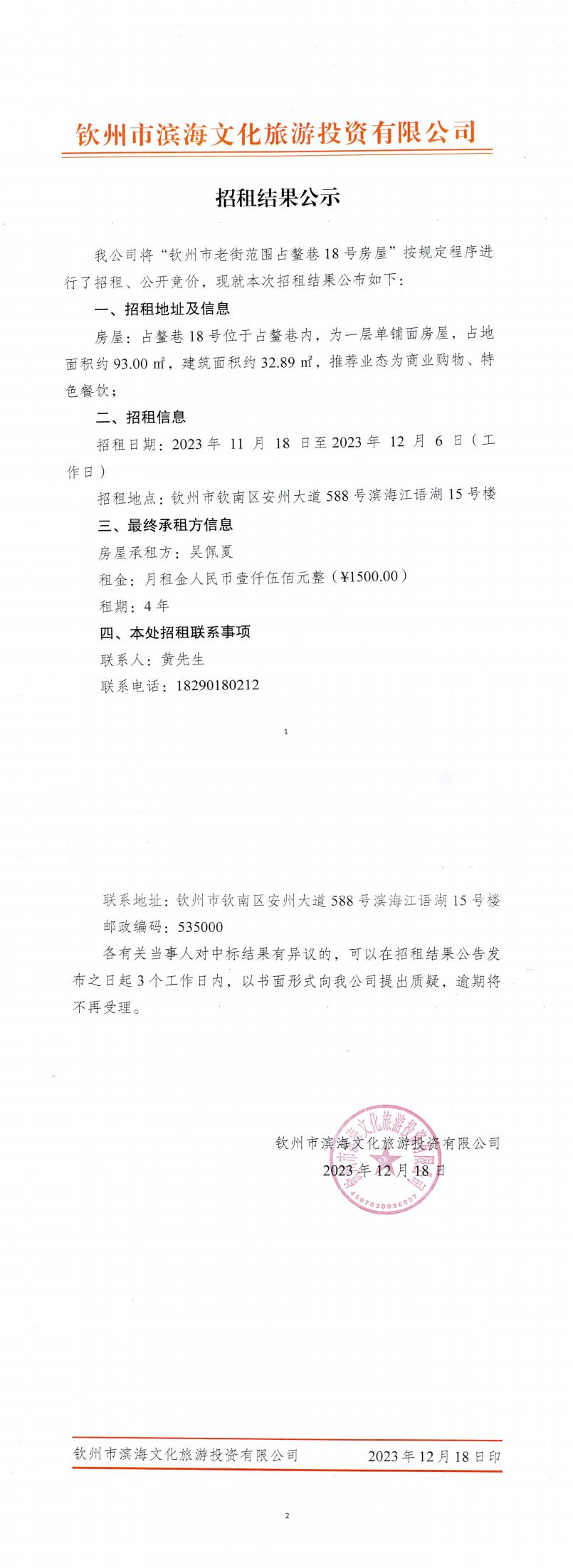 老街范圍內(nèi)公房招租項目(QZKR2024-001)成交結(jié)果公告