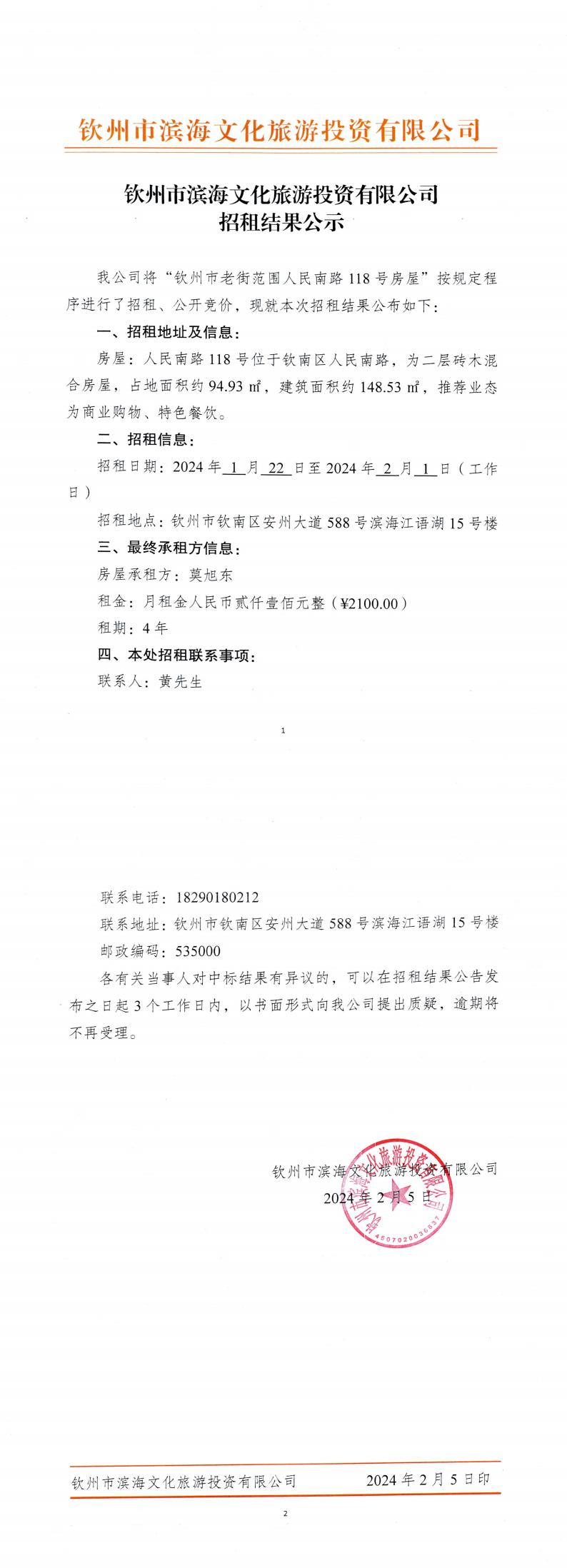 關(guān)于欽州市老街范圍人民南路118號房屋公開招租的公示