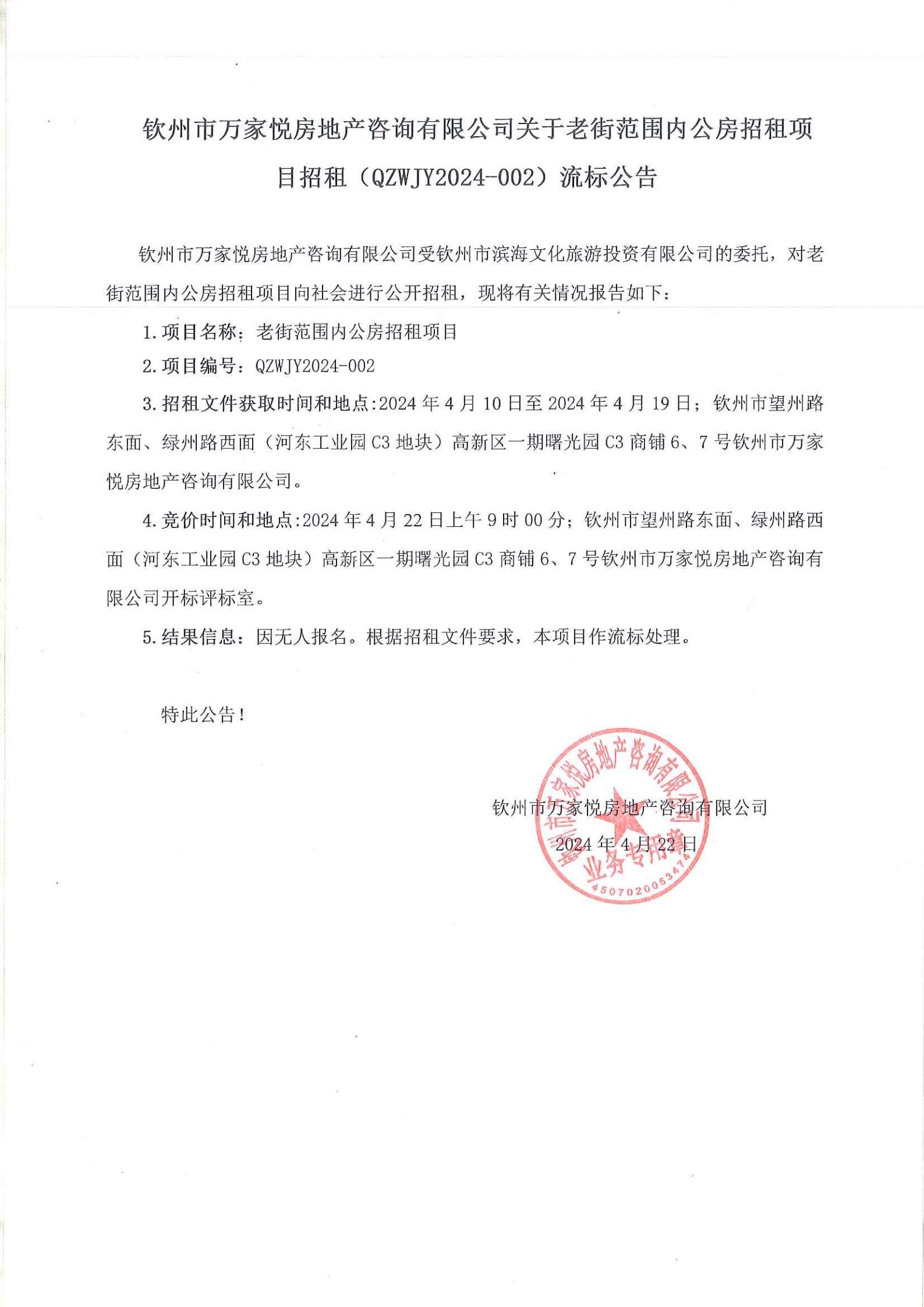 關(guān)于老街范圍內(nèi)公房招租項目招租流標(biāo)公告