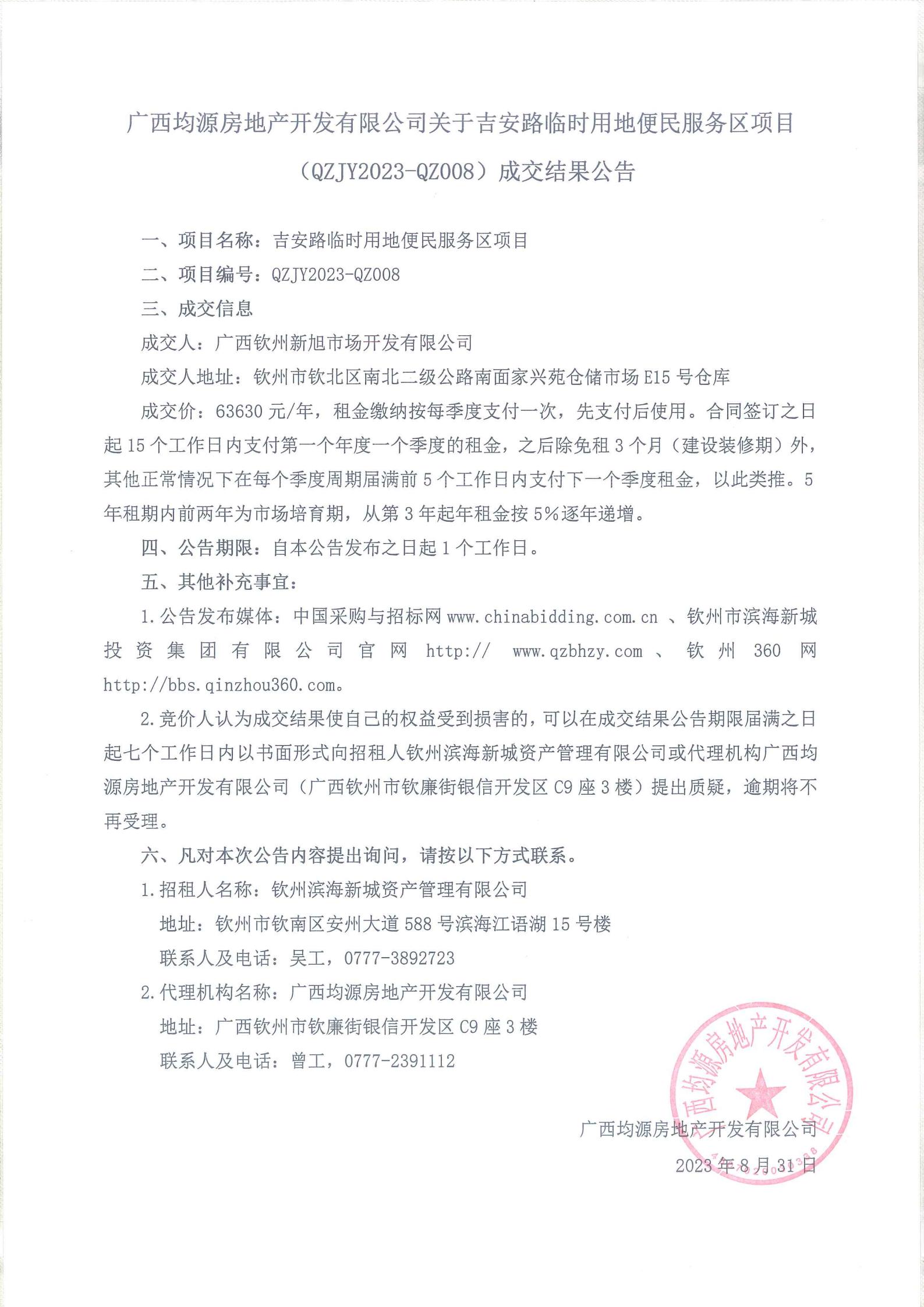 關(guān)于吉安路臨時用地便民服務(wù)區(qū)項(xiàng)目成交結(jié)果公告