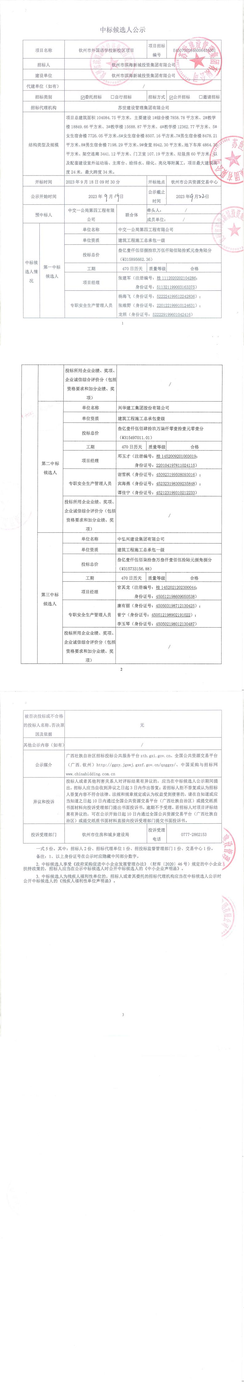 欽州市外國語學(xué)校新校區(qū)項(xiàng)目施工中標(biāo)候選人公示