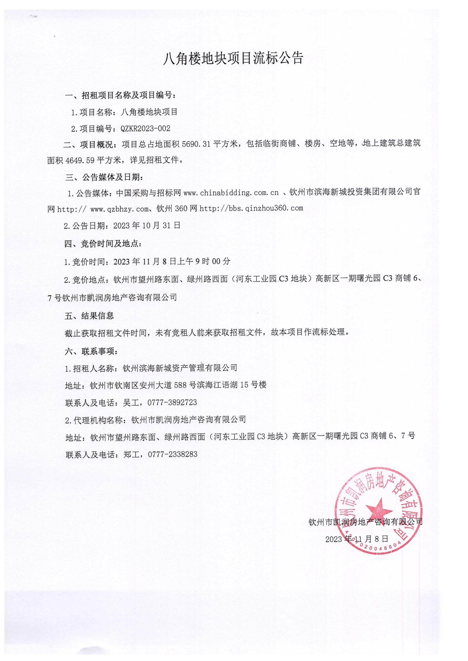 八角樓地塊項(xiàng)目流標(biāo)公告