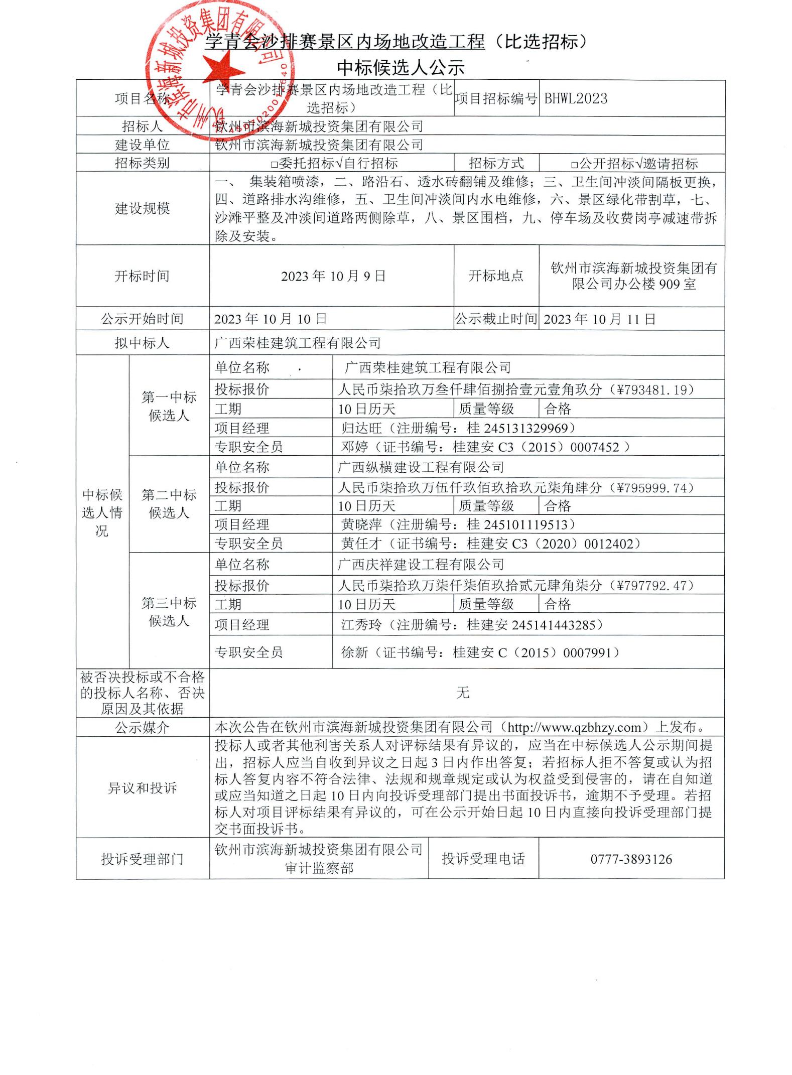學(xué)青會沙排賽景區(qū)內(nèi)場地改造工程(比選招標(biāo))中標(biāo)候選人公示