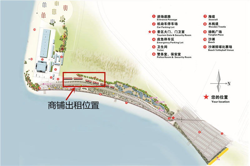 商鋪總面積為776㎡,共22間商鋪,其中18㎡商鋪20間,208㎡商鋪2間,經(jīng)營范圍:海鮮大排檔、特色小吃、燒烤、糖水、飲料、沙灘玩具等。