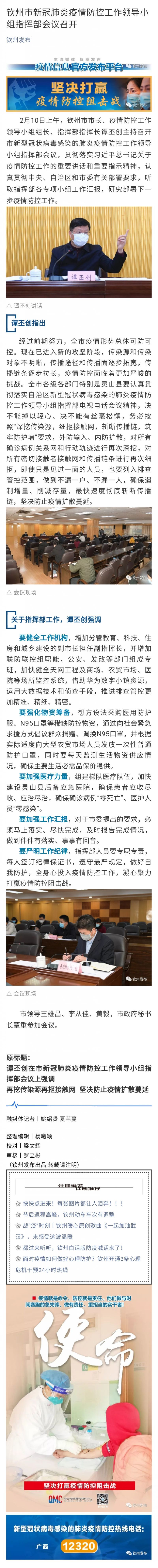 欽州市新冠肺炎疫情防控工作領(lǐng)導小組指揮部會議召開