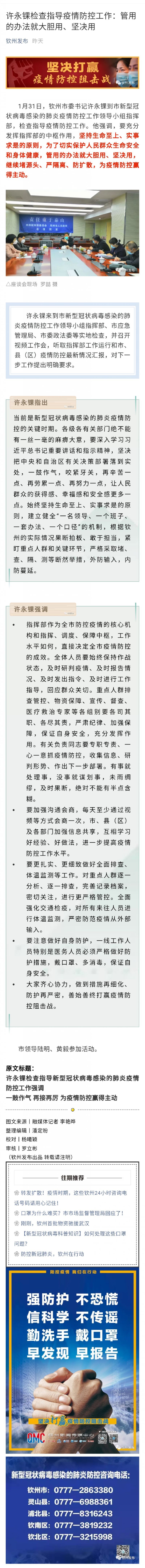 欽州市委書記許永錁深入一線,隨機抽查疫情防控工作情況