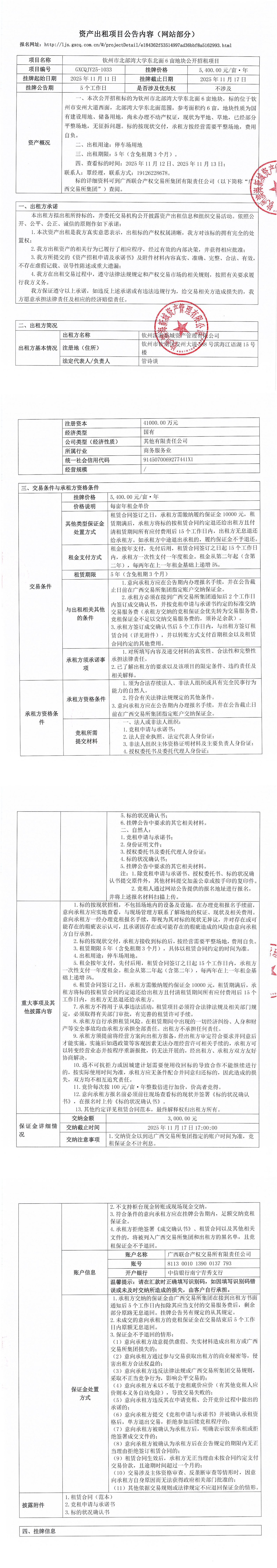 欽州市北部灣大學(xué)東北面6畝地塊公開(kāi)招租項(xiàng)目