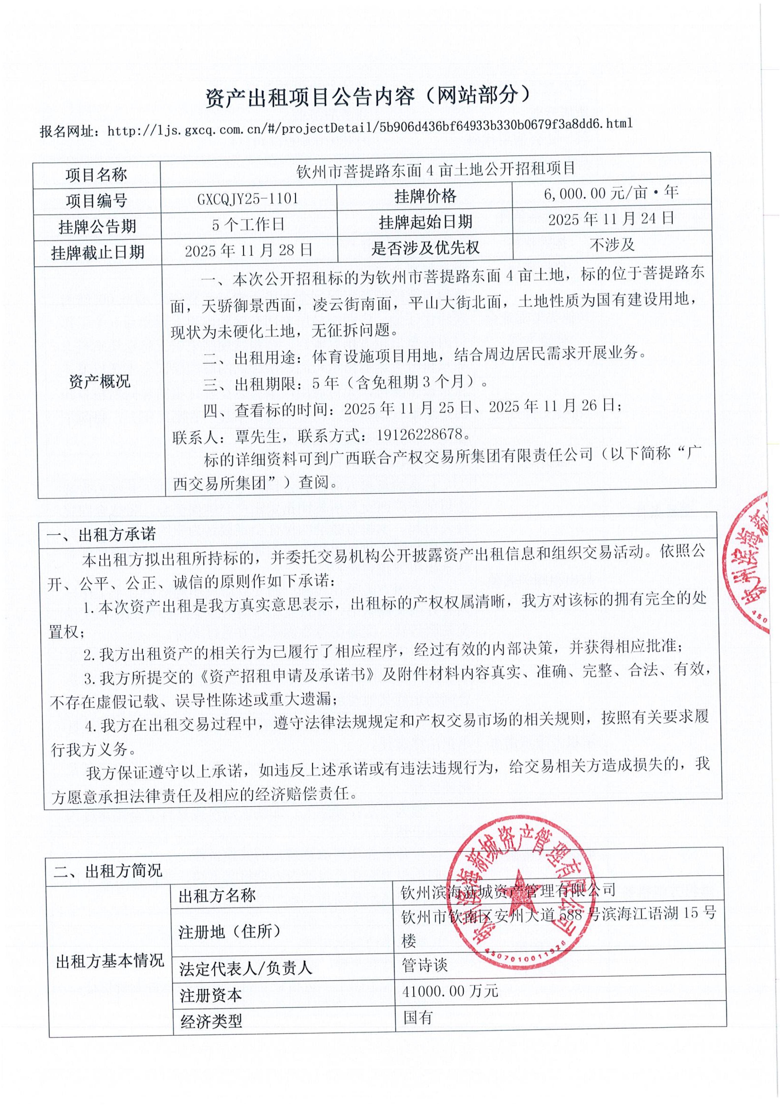 欽州市菩提路東面4畝土地公開(kāi)招租項(xiàng)目