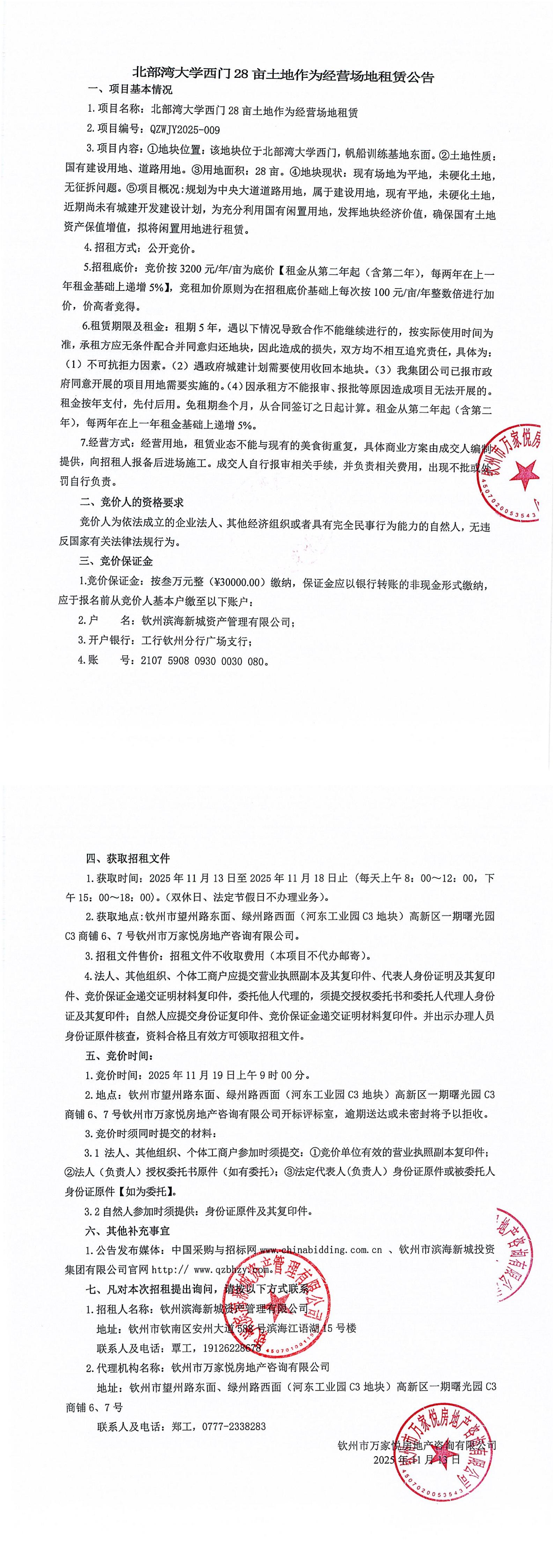 北部灣大學(xué)西門28畝土地作為經(jīng)營場地租賃公告