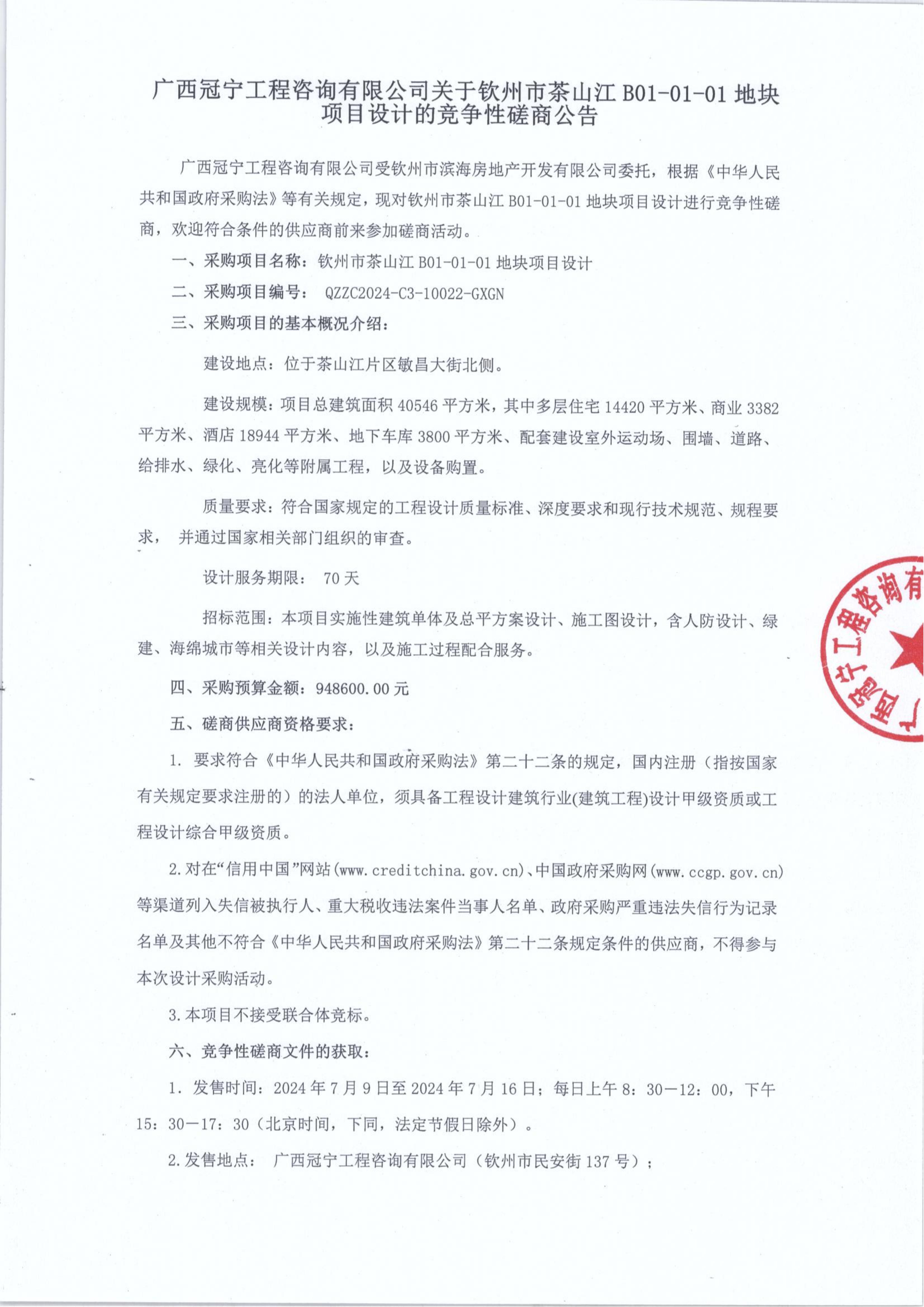 1.招標(biāo)條件 本招標(biāo)項目欽州北部灣大學(xué)大門商業(yè)街地塊項目設(shè)計已由廣西投資項目在線審批監(jiān)管平臺以備案形式批準建設(shè),招標(biāo)人為欽州市濱海房地產(chǎn)開發(fā)有限公司,建設(shè)資金來自國有資金,項目出資比例為: ...